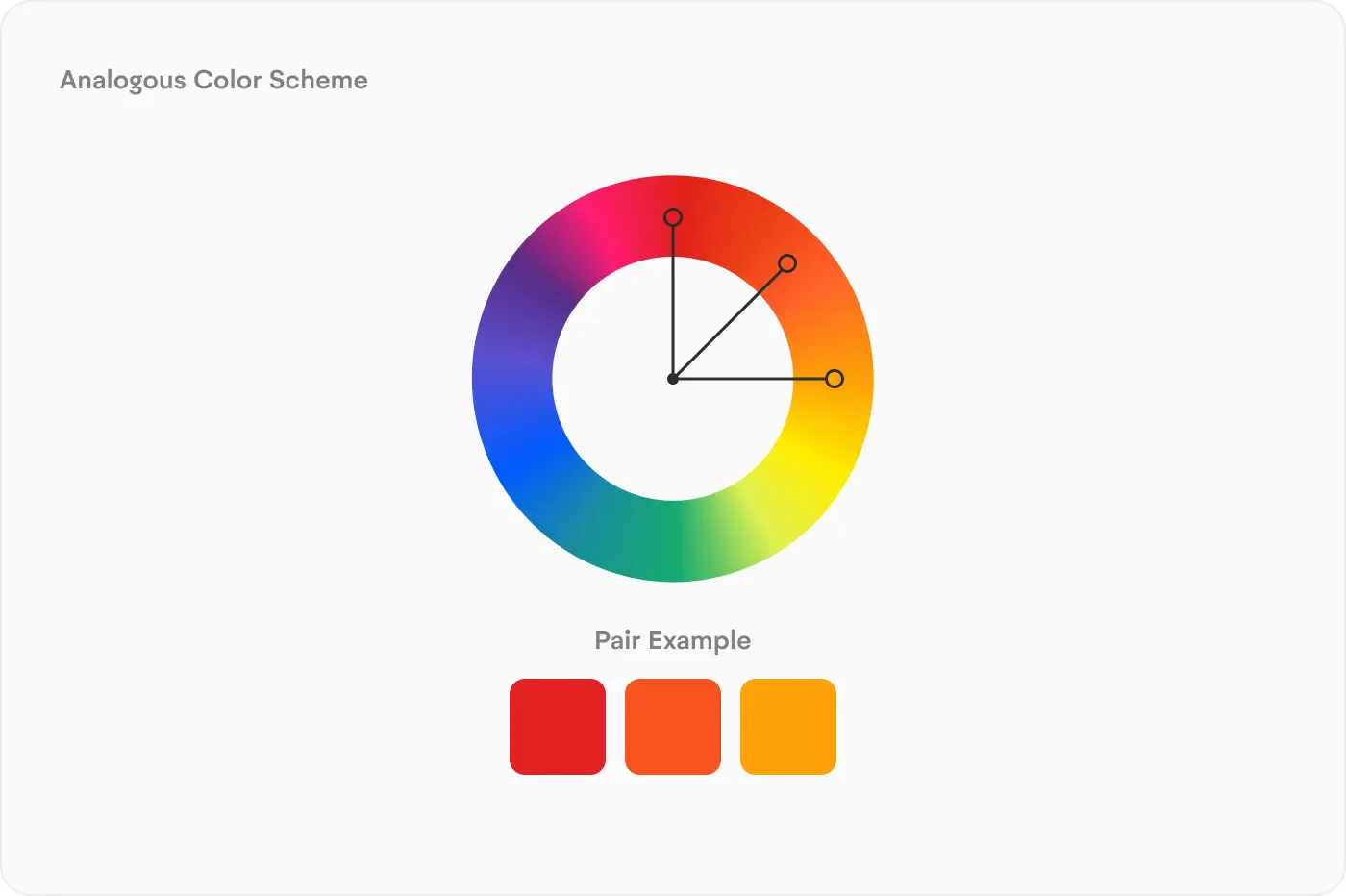 Another option is opting for analogous color schemes. Here you would pick three colors that sit next to one another on the color wheel. Red, orange and yellow is an example color scheme. Analogous colors provide a smooth contrast without being too intense for users.