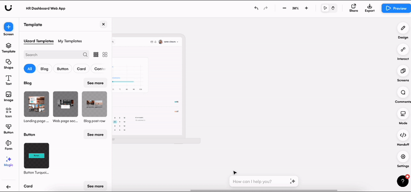 Apply a theme to your entire UI design using just a text prompt with Uizard Theme Generator. Located in the same spot as the screen and image generators, switch up the color scheme of your project quickly and easily.
